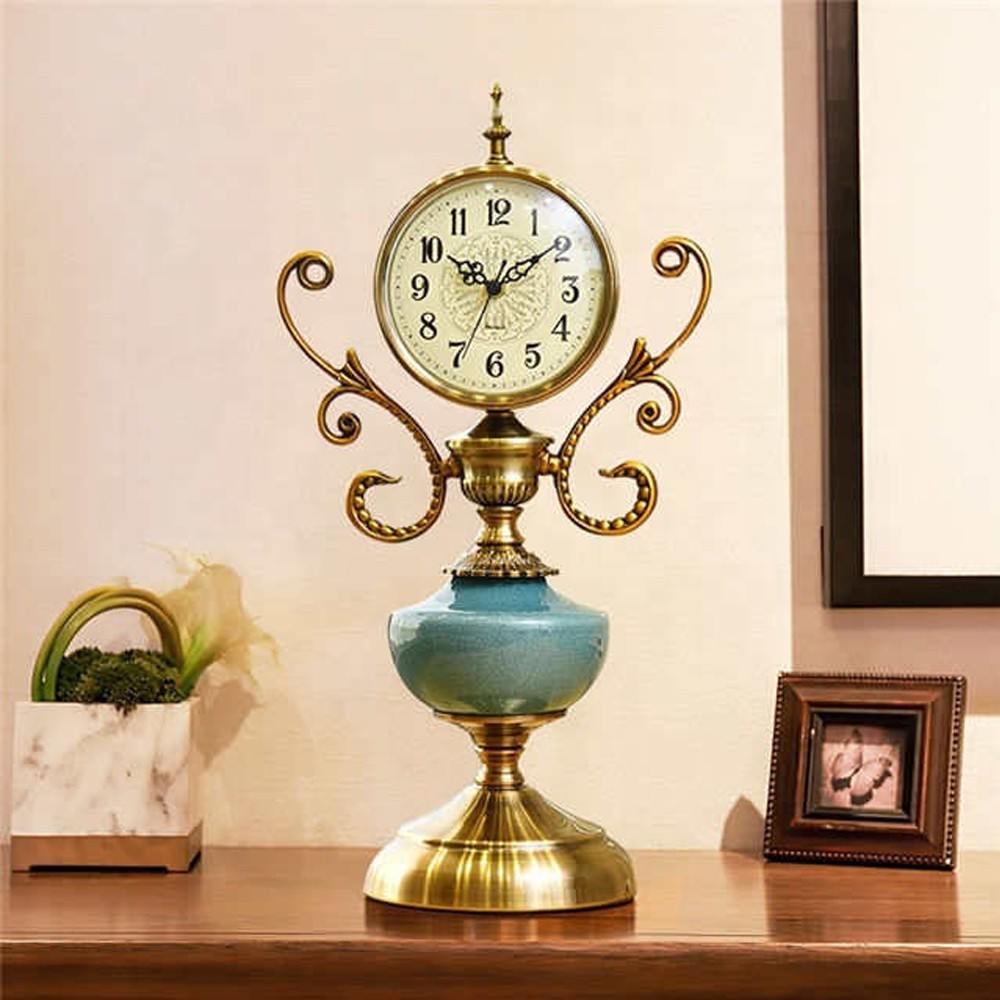 Luxury Bronze Table Clock with Light Blue Finish & Side Patterns – 6828-1