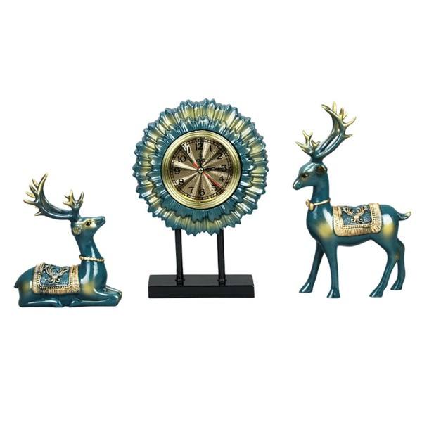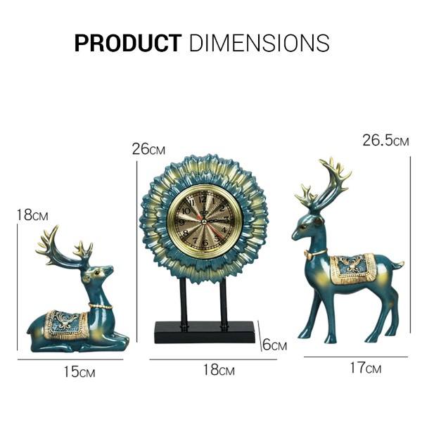 Components: 1 Table Clock and 2 Deer Figurines.