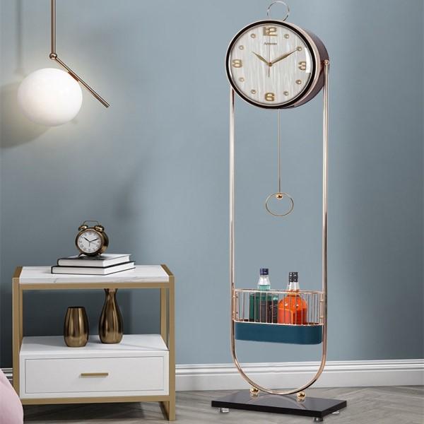LUXURY STANDING CLOCK GOLD STEEL &BLUE LEATHER FINISH WHITE FACE 60018A