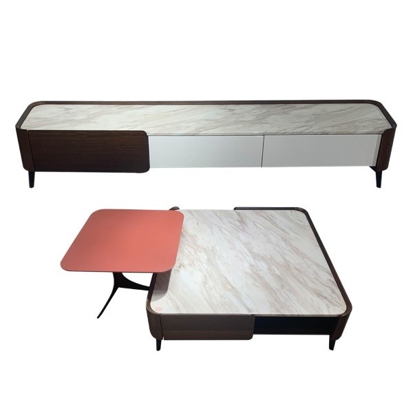 The Modern Luxury Set of Three TV Stand & Coffee Tables (Model 8011) is a high-end furniture package designed to furnish a complete modern living area. The set includes a large TV stand and two accompanying coffee tables, all unified by a luxurious, contemporary design.