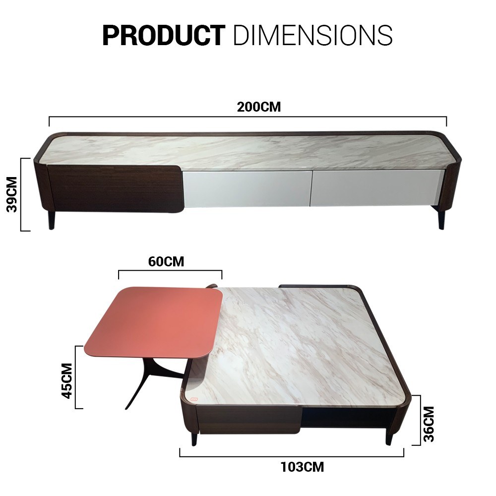 Set Contents: Includes a TV Stand and two Coffee Tables (Set of 3 pieces).