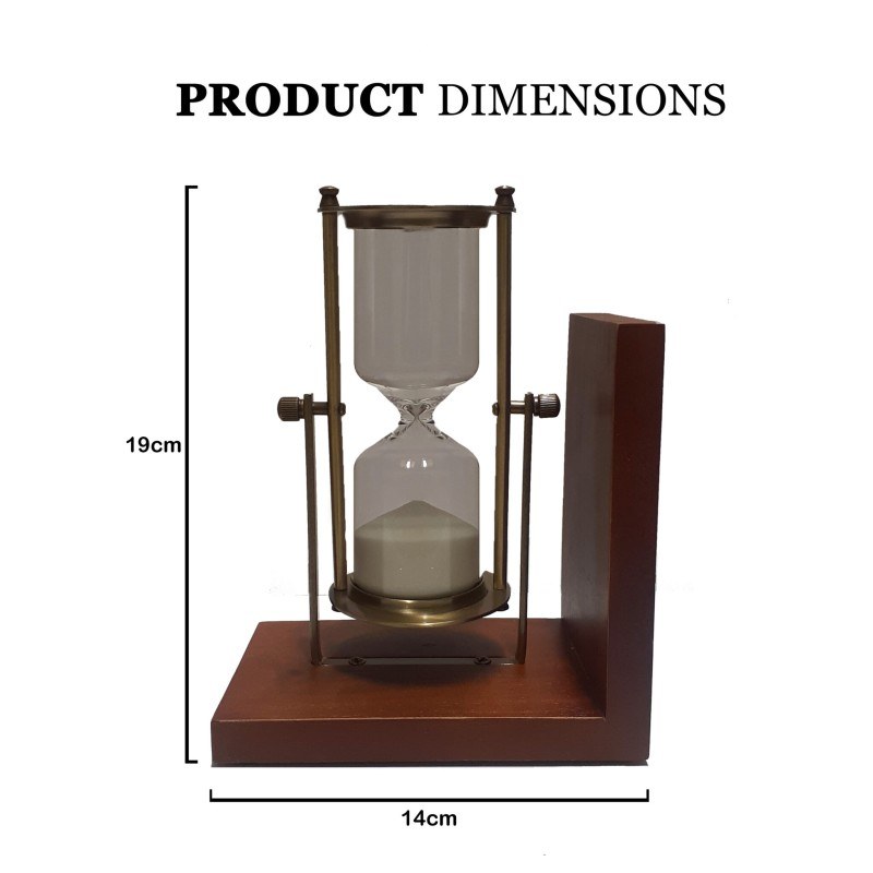 This unique item is a Set of 2 Hourglass Bookends designed to elegantly hold your books while serving as functional timers. Each bookend features an hourglass, which likely measures a 15-minute interval (implied by the "15m" in the product title). This piece is a perfect combination of utility and decor, adding a sophisticated, timed element to a library, office, or study shelf.