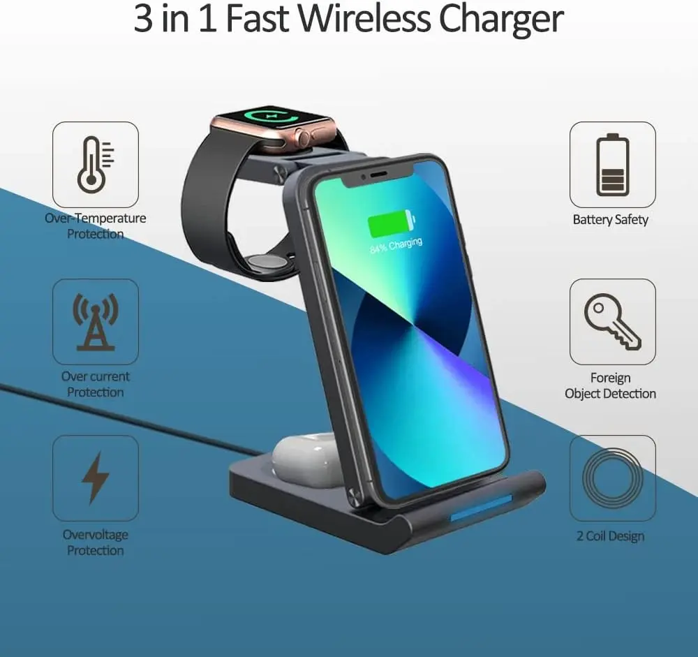 Why Choose This Product? The ILEPO 3-in-1 Folding Wireless Charger is perfect for anyone seeking a clutter-free charging solution. Its foldable design makes it travel-friendly, while its ability to charge multiple devices simultaneously saves time and space.Perfect For: