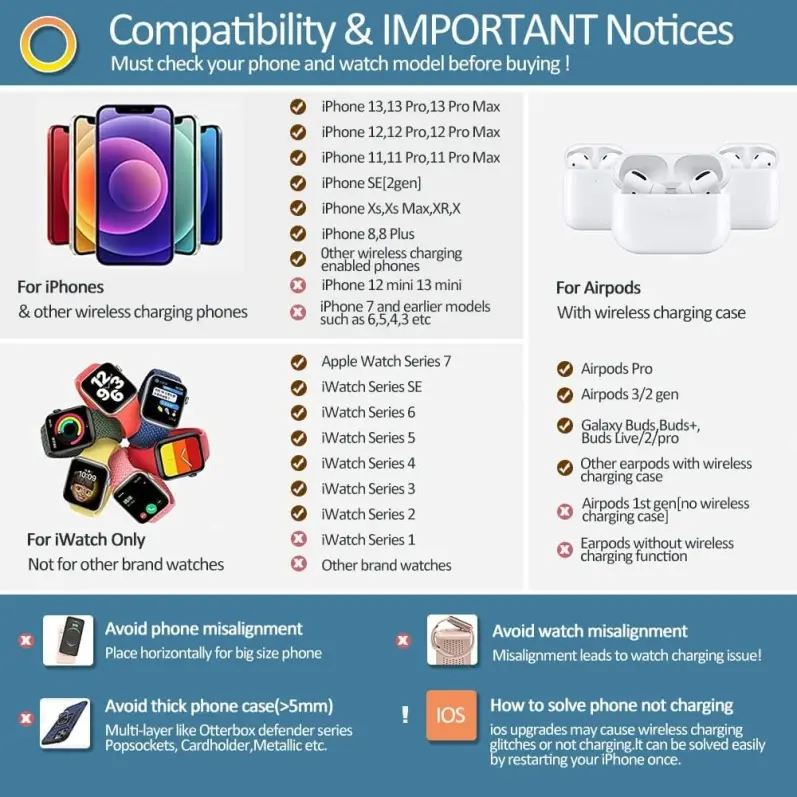 Compatibility: Qi-enabled devices, including iPhone, Samsung, AirPods, and Apple Watch