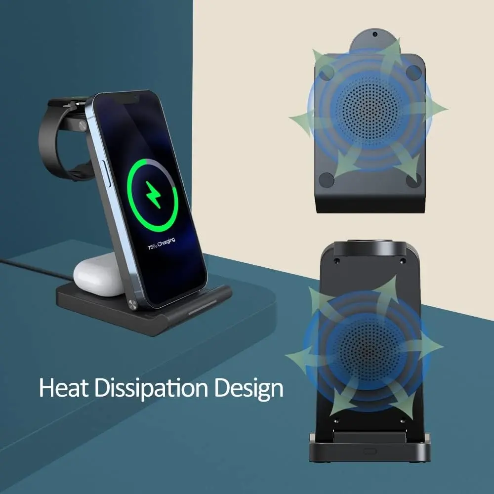 Simplify your charging experience with the ILEPO 3-in-1 Folding Wireless Charger, a sleek and innovative solution designed to power up all your devices simultaneously. Perfect for modern lifestyles, this wireless charger combines convenience, efficiency, and versatility in a compact design.Key Features: