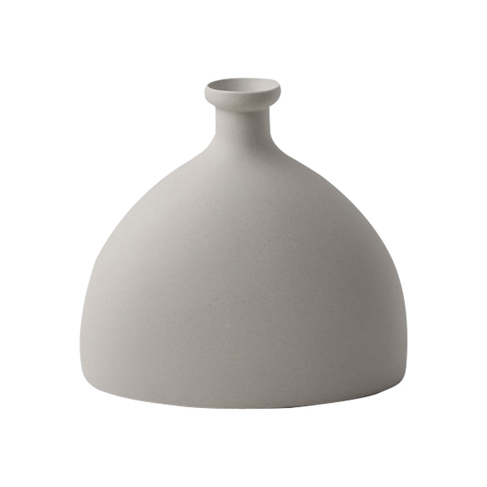 This decorative piece is an Abstract Hand Crafted Ceramic Vase featuring a distinctive Concrete Round Top Style. The vase combines the textured, raw aesthetic of ceramic craftsmanship with a minimalist, contemporary design, highlighted by the contrasting "concrete" element at the top. It serves as a striking art piece, perfect for displaying dried arrangements or standing alone as a sculptural focal point in a modern or industrial-themed interior.