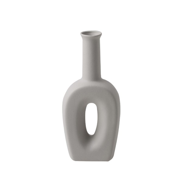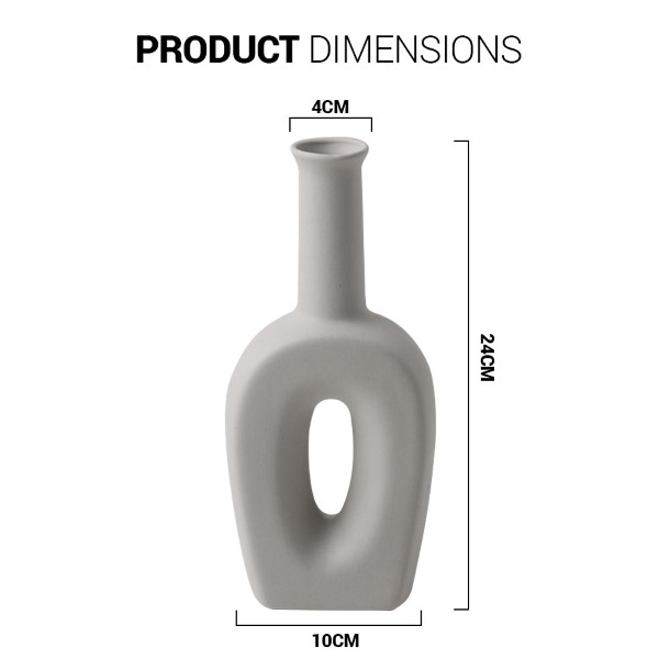 This decorative piece is an Abstract Hand Crafted Vase featuring a modern Concrete Circle Cylinder Style. This vase likely combines a cylindrical or abstract ceramic form with a textured finish that mimics the look of concrete, featuring a distinct circular opening or design element. It is designed to be a modern and minimalist sculptural accent, perfect for holding small arrangements or standing alone on a contemporary shelf or table.