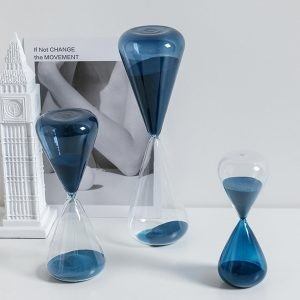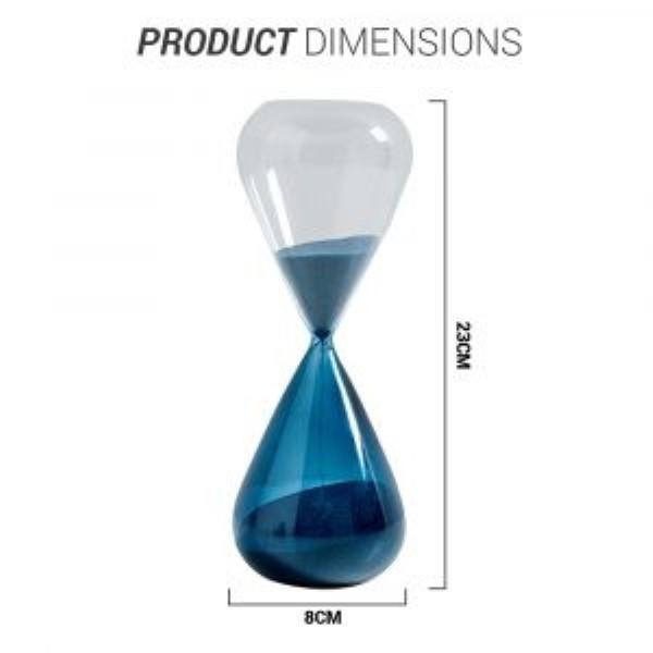 This elegant Blue Glass Table Hourglass is a functional and beautiful desk accessory. Designed to be a classic timekeeper, it measures a duration of 30 minutes, making it ideal for managing study sessions, short work blocks, or meditation. The hourglass is fully constructed from blue-tinted glass, creating a monochromatic, modern, and soothing look as the sand flows.
