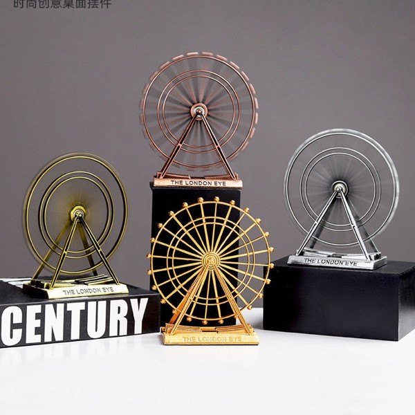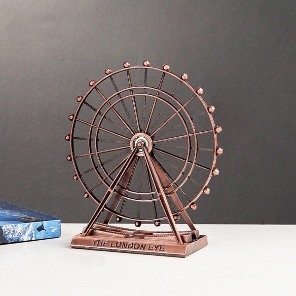 Bring the charm of a classic world landmark into your home with this Brown Bronze London Eye Ferris Wheel Table Decor (Model BJ077-03). This decorative piece features a detailed miniature replica of the iconic London Eye, finished in an antique-look brown bronze tone. It serves as a nostalgic and sophisticated accent piece for any desk, shelf, or living area, perfect for travel enthusiasts or those who appreciate vintage architectural models.