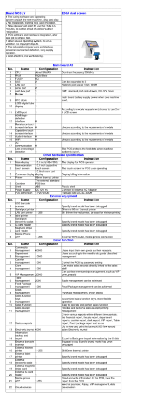 Upgrade your business with the Dual Screen 10 Inch All-in-One Capacitive Touch Screen POS Cash Register E86A. This integrated Point-of-Sale system is designed to accelerate transactions and professionalize the checkout process with its innovative dual-screen setup, offering clear communication and engagement with every customer.