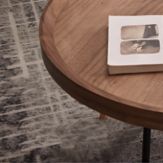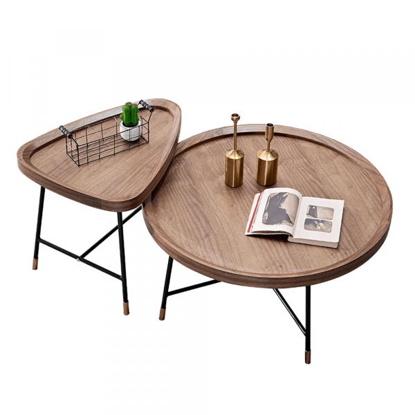 Iron Small Round Table Walnut Oak Table Z-040BT