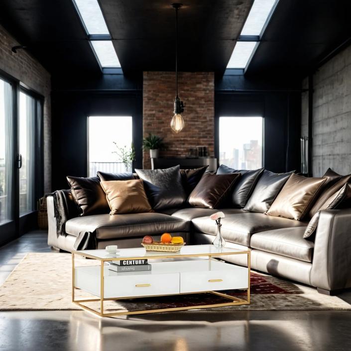 Its spacious design includes two storage drawers, blending functionality with luxury, making it a perfect centerpiece for any modern living room.