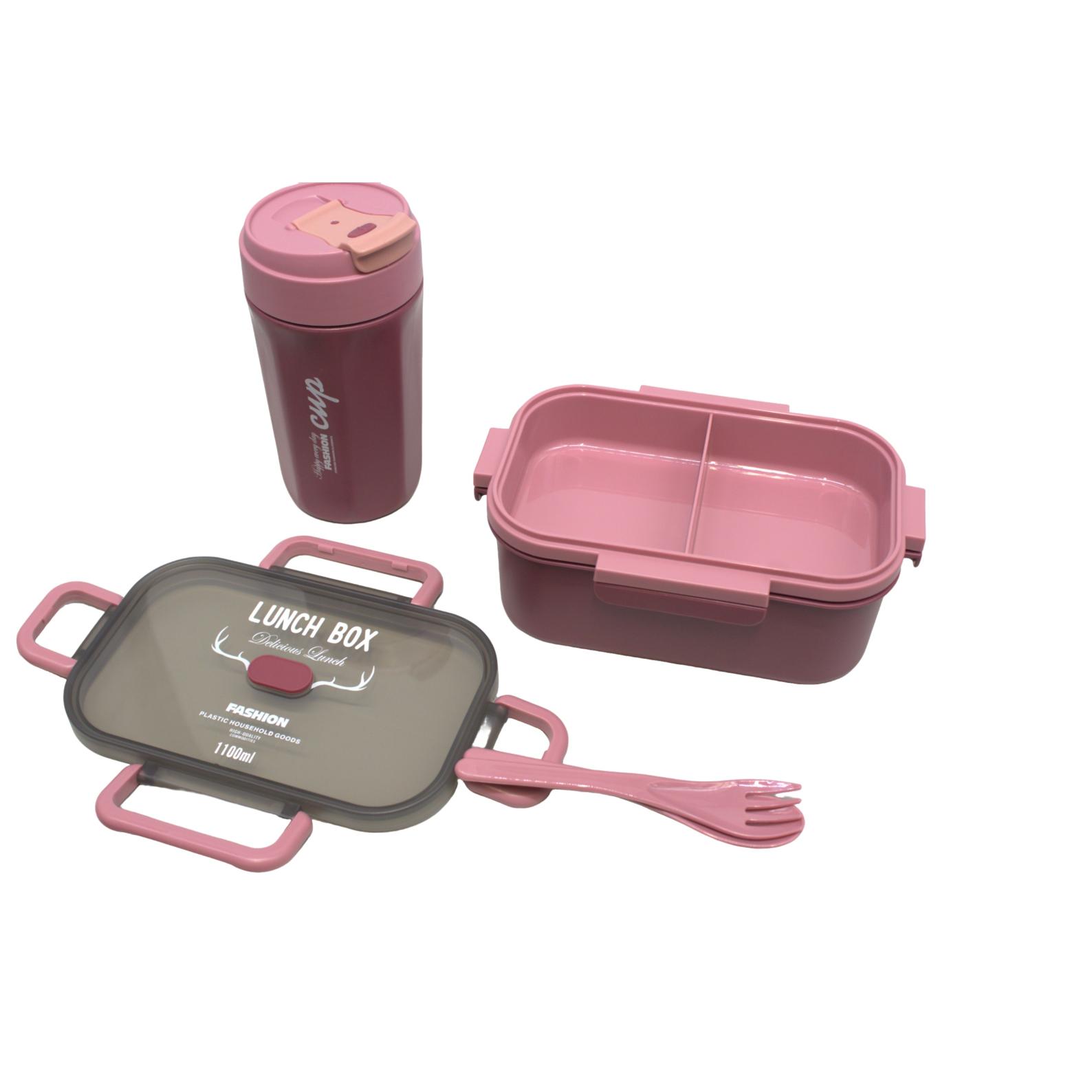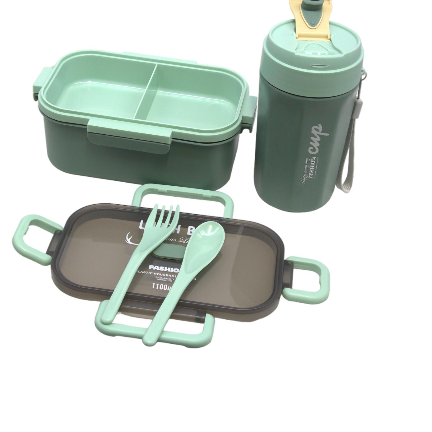 Rectangular 1100ml Lunch Container Double Layer and Travel Coffee Drink Cup 500ml