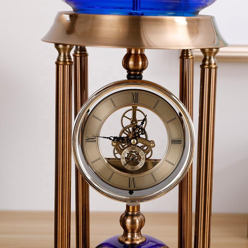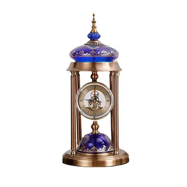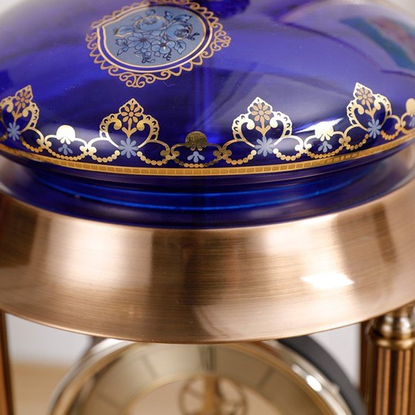 This is a premium Luxury Silent Table Clock (Model 6888A-1) that combines high-end elegance with quiet functionality. The clock features a distinctive Blue Hand Painted Base & Top, providing an artisanal, colorful, and unique design element. Since it is a Silent clock, it operates without the traditional ticking sound, making it ideal for creating a peaceful atmosphere in any room while serving as a luxurious and artistic decorative focal point.