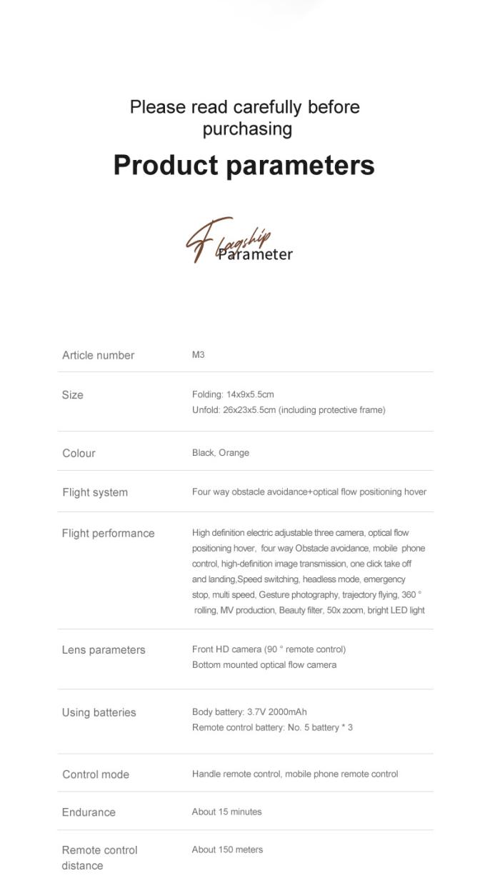 Funtions: Up/Down, Front/Rear, Left/Right Turn, Side Fly, LED Lights, Headless Mode, Optical Flow Positioning Hover Height Hold Mode, Three Camera, Four Way Obstacle Avoidance, Electrically Adjustable Camera, WiFi FPV