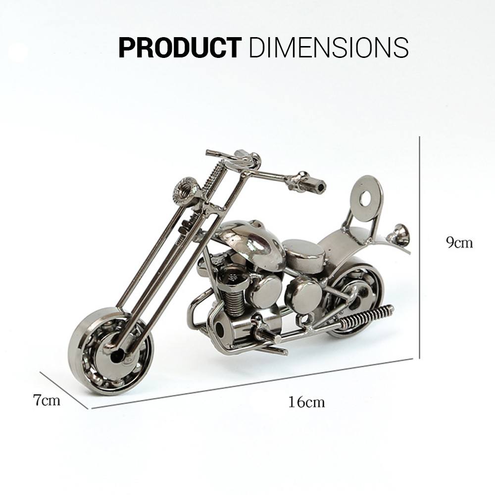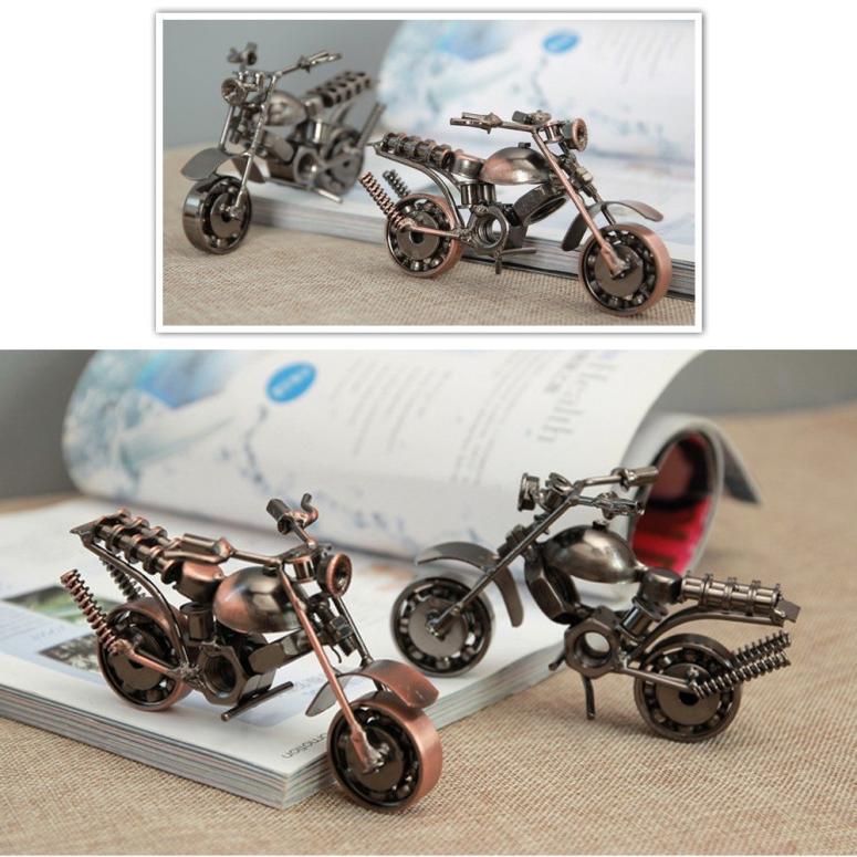 This decorative piece features a detailed Metal Motorcycle Model (D307-2), often identified as a Harley Motorcycle Model Ornament. Crafted from durable metal with an antique finish, this collectible model is designed to bring a touch of vintage charm and industrial style to any tabletop, shelf, or desk. It's an ideal statement piece for motorcycle enthusiasts and collectors of retro-inspired decor.