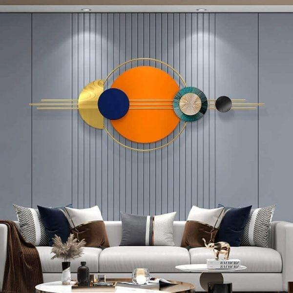 Modern Abstract Hand Crafted Wall Art Gold Black Orange & Blue FBY22154