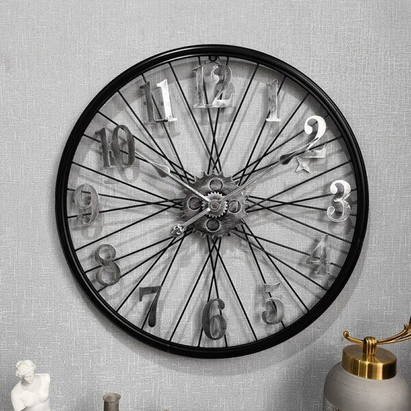 This Modern Bicycle Style Wall Clock (Model YX20210806) is a unique, novelty piece that also functions as a timekeeper. It is designed for wall mounting.