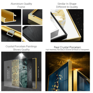 • Mounting method: porcelain sealing glaze + HD picture core + mirror porcelain +  rust-proof aluminum frame + thick MDF back plate.