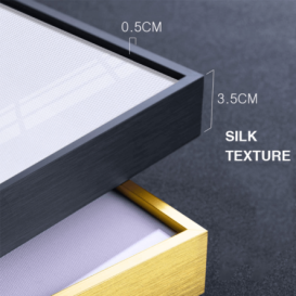 • 3.5cm aluminum alloy picture frame, fine brushed texture, one-piece molding, strong and thick, waterproof and anti-rust, anti-rust and deformation 6mm thick MDF moisture-proof back panel, non-slip hooks, corner reinforcement.