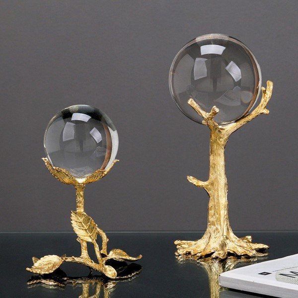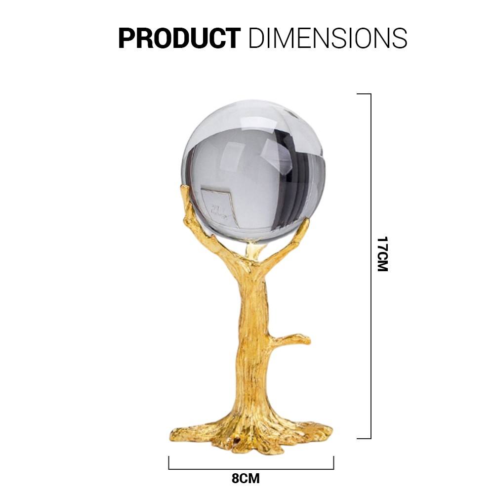 Add a touch of contemporary glamour and organic design to your space with this Medium Crystal Ball on a Tree Pedestal (Model BJ292-01). This eye-catching decorative piece features a clear crystal ball that beautifully captures and refracts light, mounted atop a sculpturally designed pedestal shaped like an abstract, elegant tree. The combination of the reflective crystal and the artistic gold-toned base creates a sophisticated and balanced focal point.