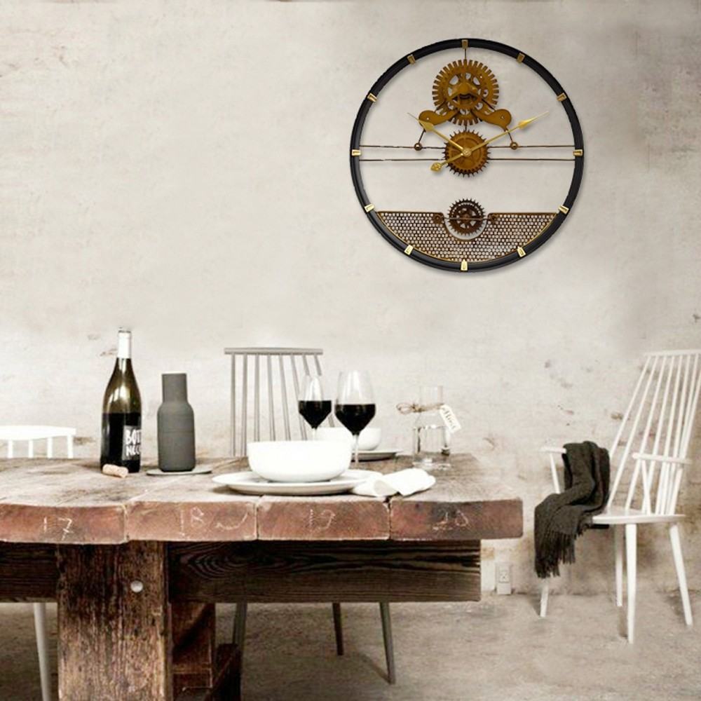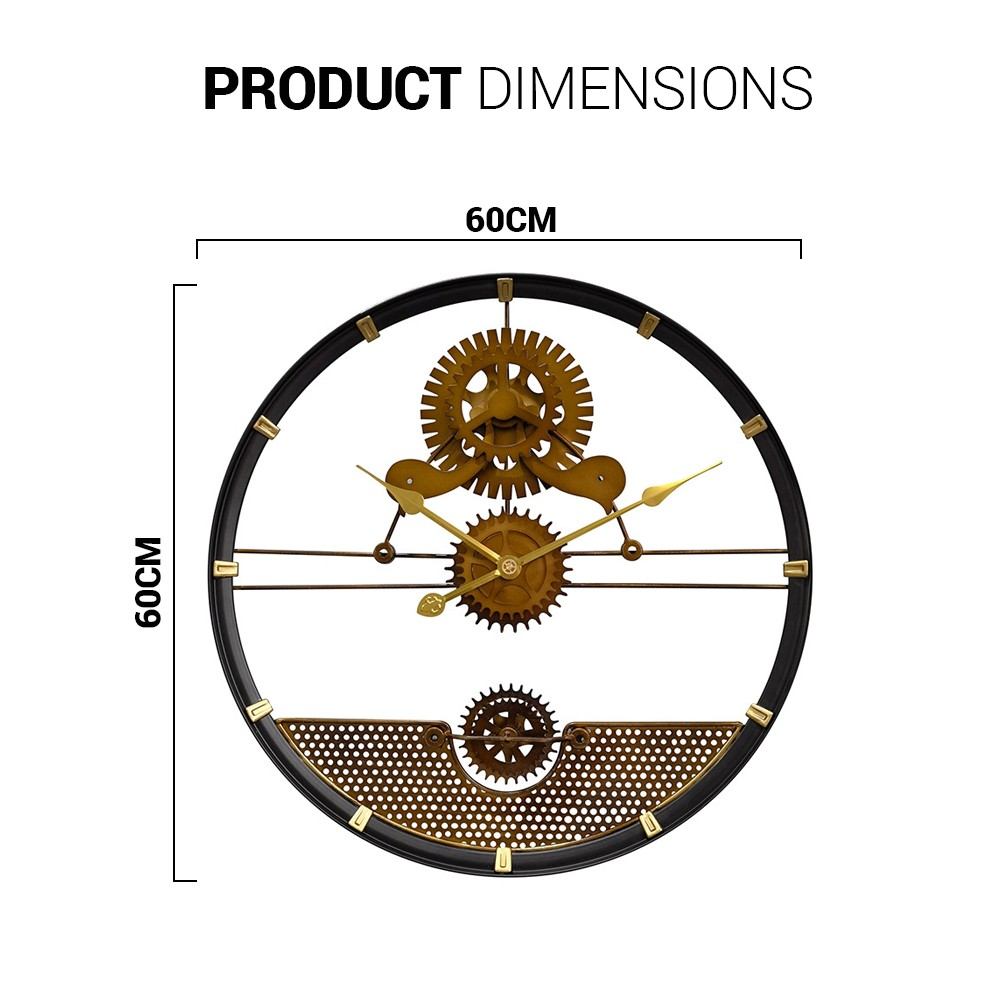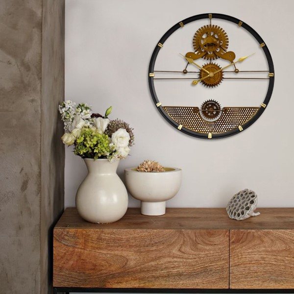 Modern Wall Clock Black Gold & Wood Finish 60CM