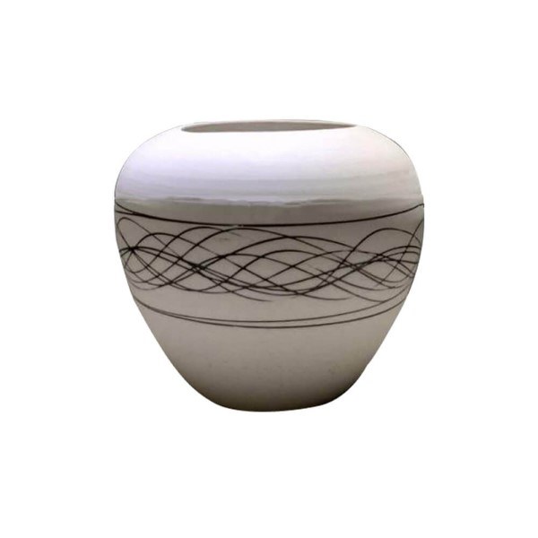 Modern White Ceramic Decorative Pot & Abstract Art With Minor Manufacturing Defects B-135