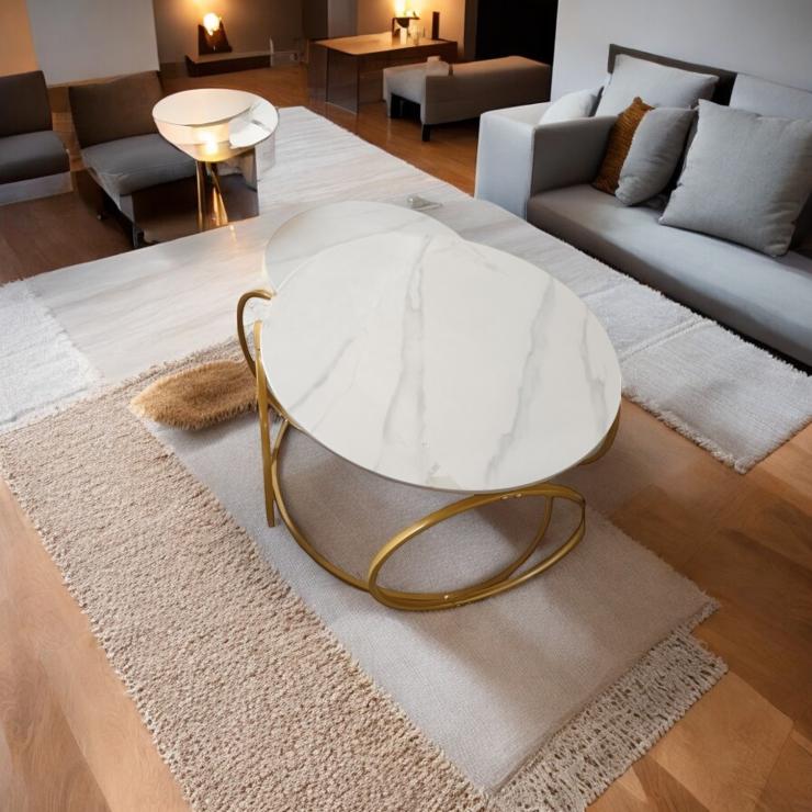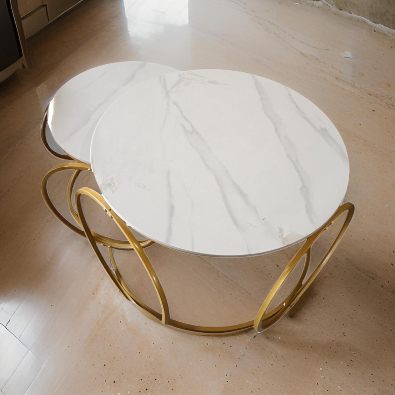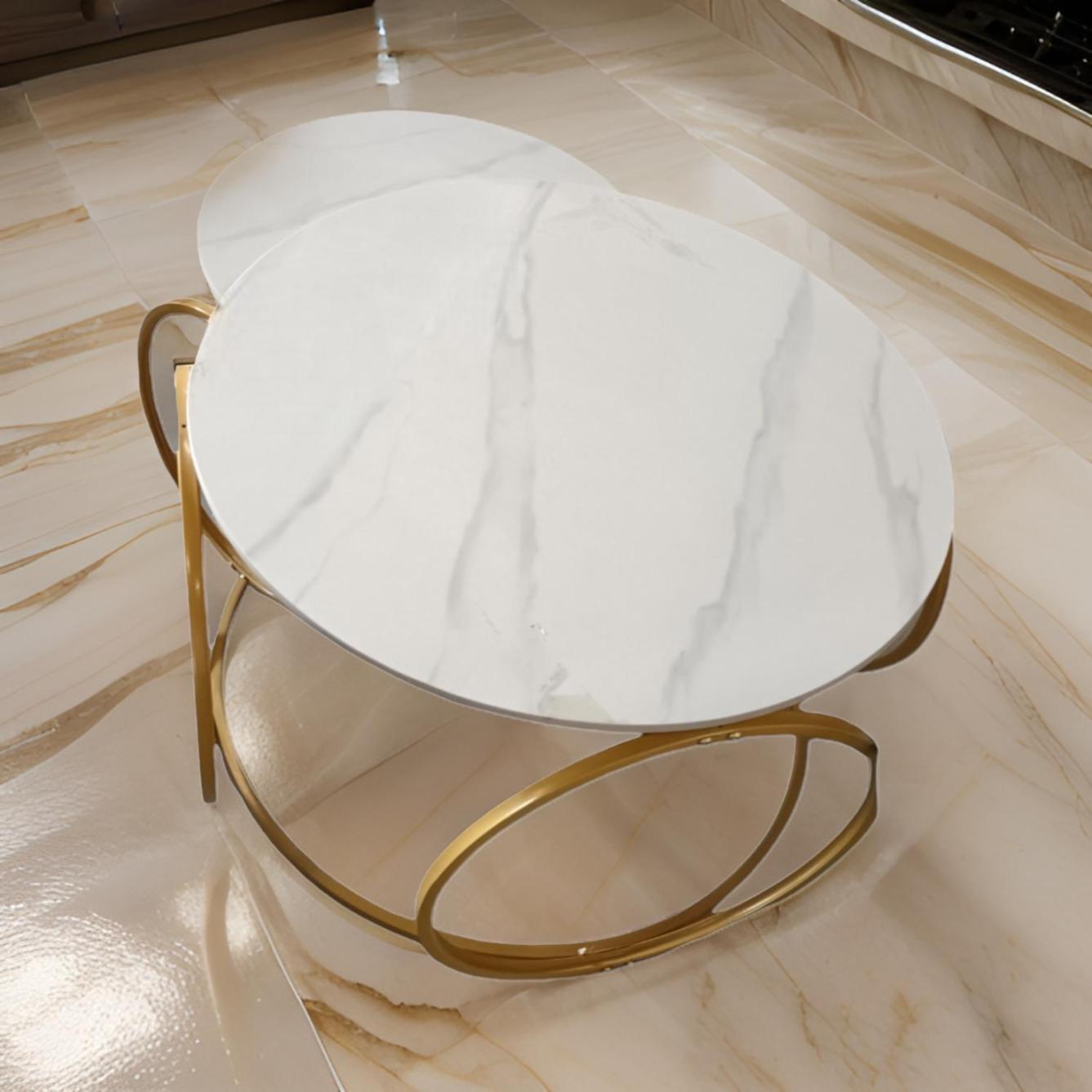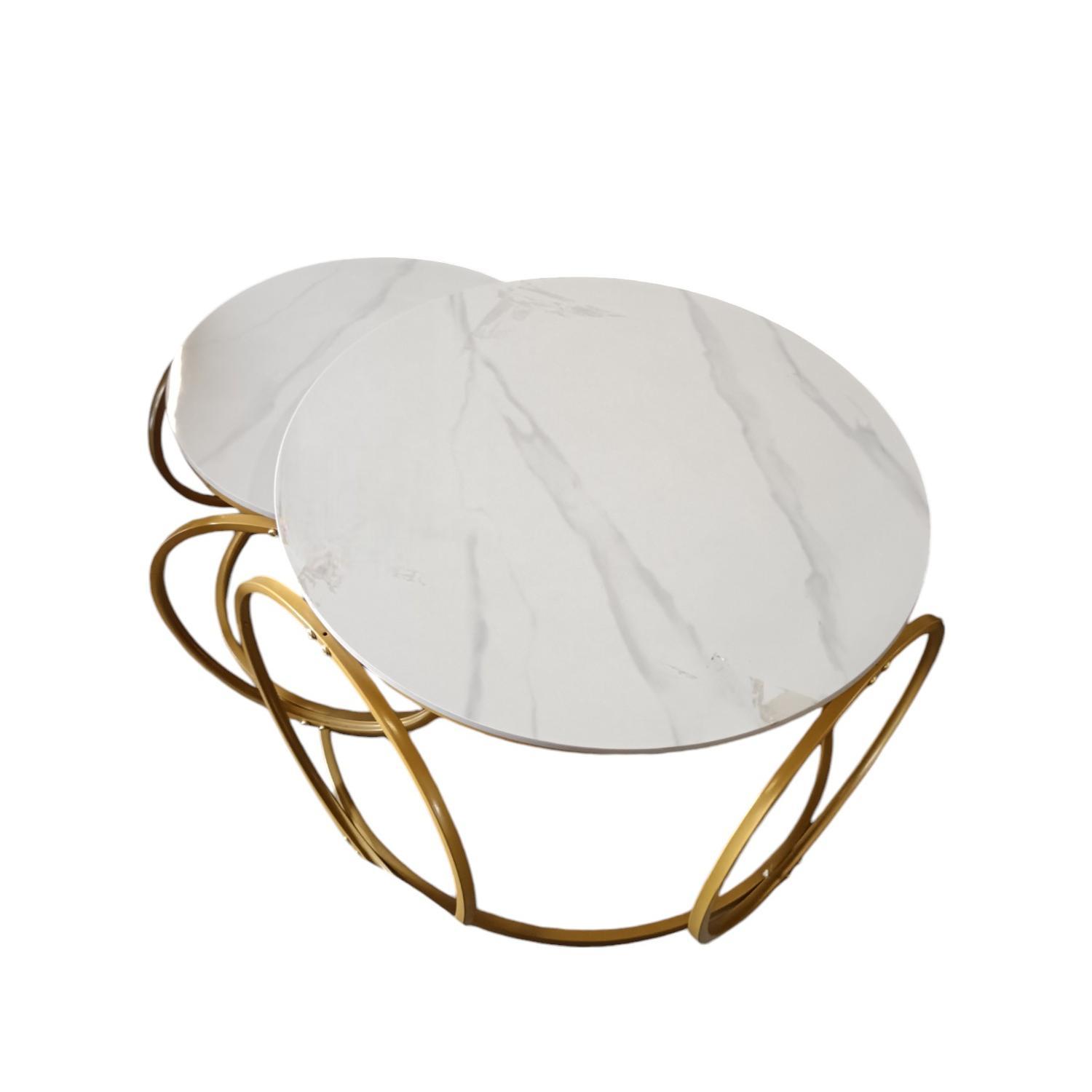 Product Name: Modern White With Gold Nesting Coffee Table Set.