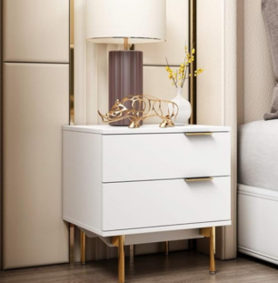 Ample Storage: Features two spacious drawers to keep your essentials—like books, reading glasses, and devices—organized and out of sight, maintaining a clean bedside surface.